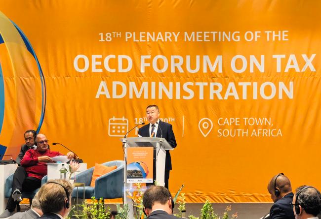 近日,中国国家税务总局局长胡静林率代表团应邀出席经济合作与发展组织(OECD)在南非开普敦举行的第18届税收征管论坛(FTA)大会并作主旨发言,系统介绍了中国税务部门在提升纳税意愿、增强征管效能方面的探索与实践,得到与会各方积极评价。