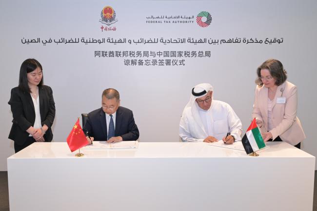 在参加税收征管论坛(FTA)大会后,中国税务代表团赴阿联酋开展访问。胡静林与阿联酋联邦税务局局长哈立德·阿尔布斯塔尼就税收征管数字化转型、优化纳税服务及深化双边合作等议题展开务实沟通,并共同签署《中华人民共和国国家税务总局与阿拉伯联合酋长国联邦税务局双边税务合作谅解备忘录》。访问期间,中国税务代表团还在迪拜召开部分驻阿中资企业座谈会并实地调研走访,介绍中国税务部门服务“走出去”企业的系列措施,听取意见建议,并解答企业关心的涉税问题,助力驻阿中资企业更好防范跨境税收风险,实现高质量发展。