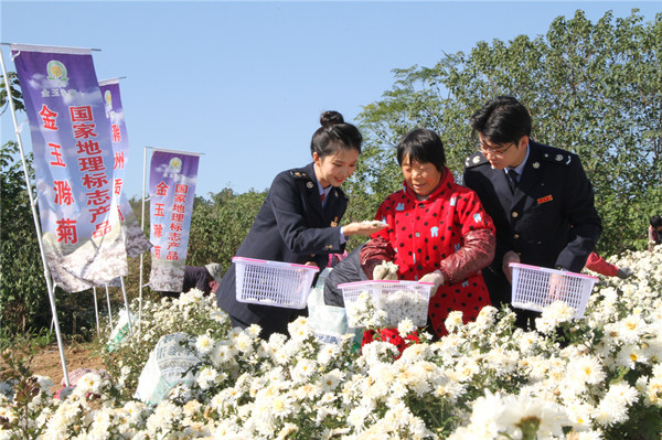 滁菊是安徽省滁州市特有的国家地理标志农产品。近期,正值滁菊采收季节,国家税务总局滁州市南谯区税务局干部走进滁菊种植企业开展调研,了解企业的个性化涉税需求。图为税务干部日前在一家企业的种植基地了解滁菊种植和销售情况。(作者:朱萌萌 刘媛媛 摄)