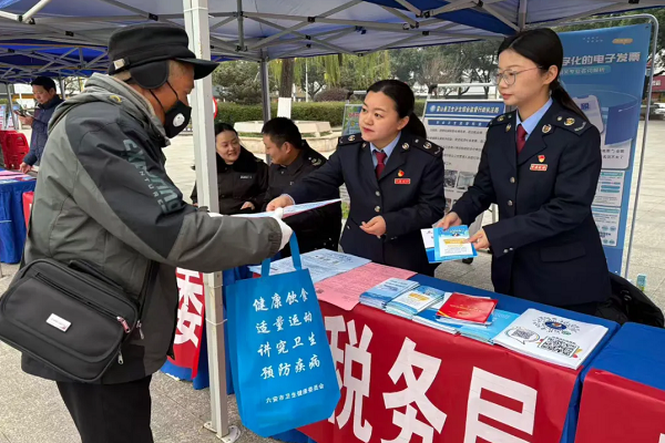 国家税务总局六安市裕安区税务局积极参与集中宣传活动,支起“普法小摊”,用接地气的语言向群众宣讲宪法知识,同步发放社保费掌上缴费手册,讲解现阶段灵活就业人员参保缴费程序,并围绕个人所得税专项附加扣除等热点问题为现场群众答疑解惑。