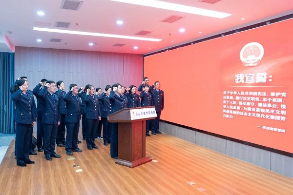 国家税务总局六安市税务局举行宪法集体宣誓仪式,市局机关新提任的科级领导干部和新进遴选人员参加。现场庄严肃穆,誓言掷地有声,彰显了税务干部对宪法的尊崇之情。
