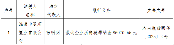 国家税务总局淮南市税务局稽查局依法送达《税务处理决定书》后,你单位在法定期限内未申请行政复议或者提起行政诉讼,又不履行本机关作出的行政决定。根据《中华人民共和国行政强制法》第三十四条、第三十五条之规定,现依法向你单位进行公告送达《催告书》(行政强制执行适用),自公告之日起满30日,即视为送达。请你单位自收到本催告书之日起十日内履行相关义务,逾期仍未履行义务的,本机关将依法强制执行。