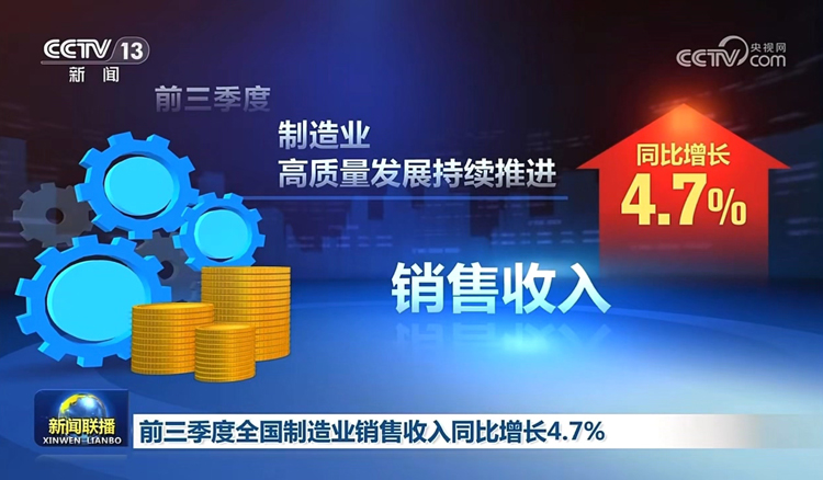 税收数据显示 前三季度全国制造业销售收入同比增长4.7...